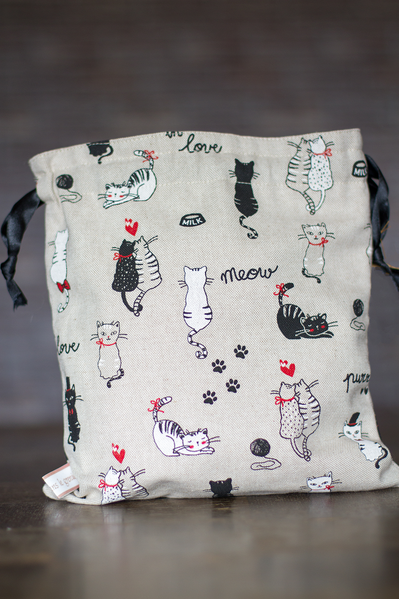 Un joli pochon, qui participe à une bonne cause, puisque pour l’achat de ce pochon, 4€ seront reversés à l’association Erquy Chat libre !